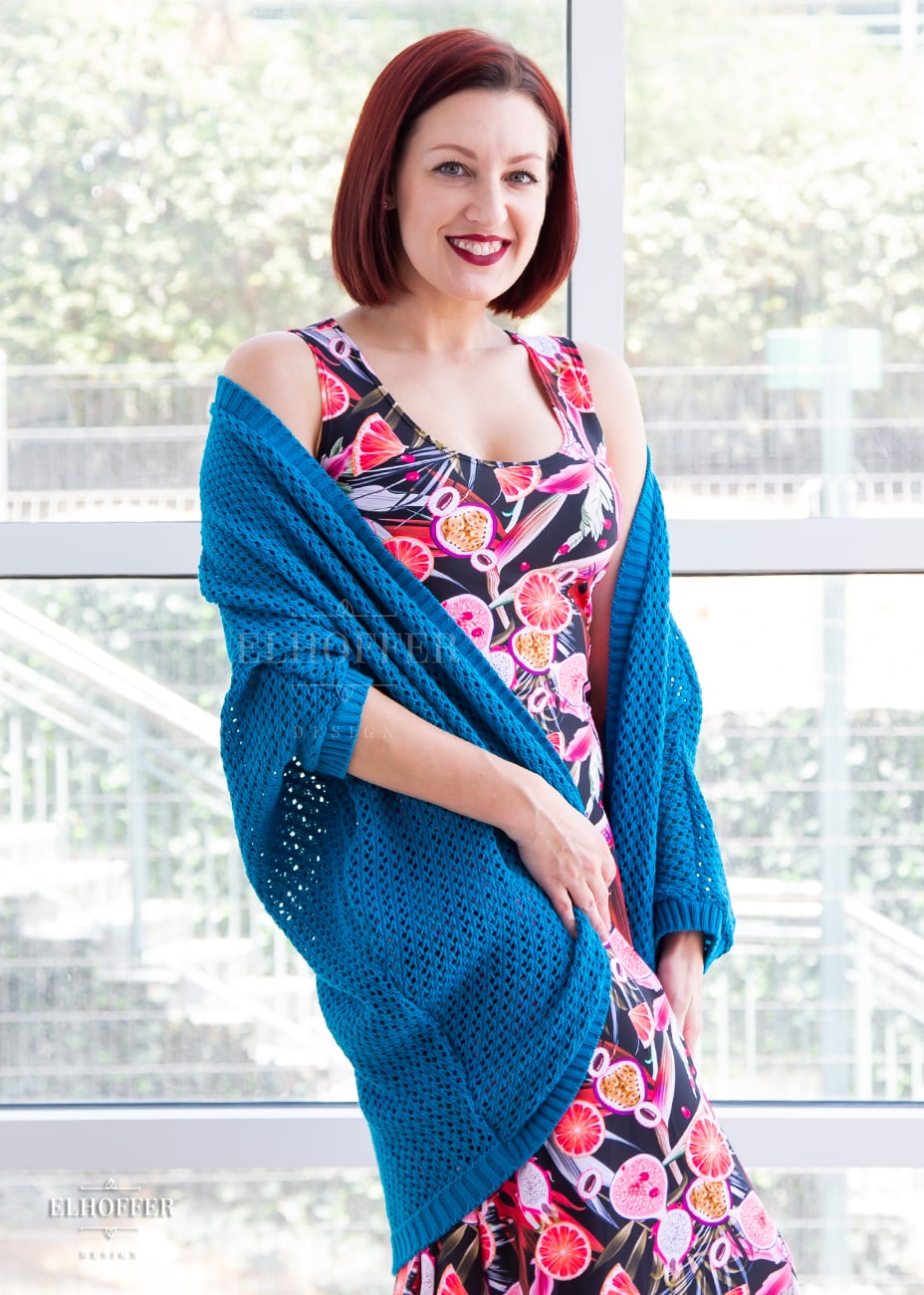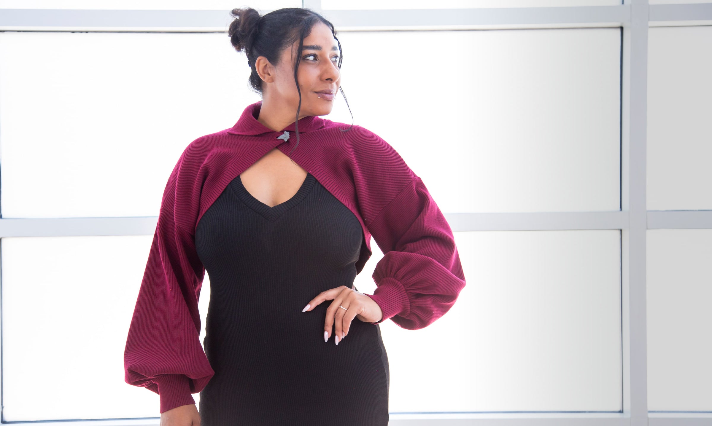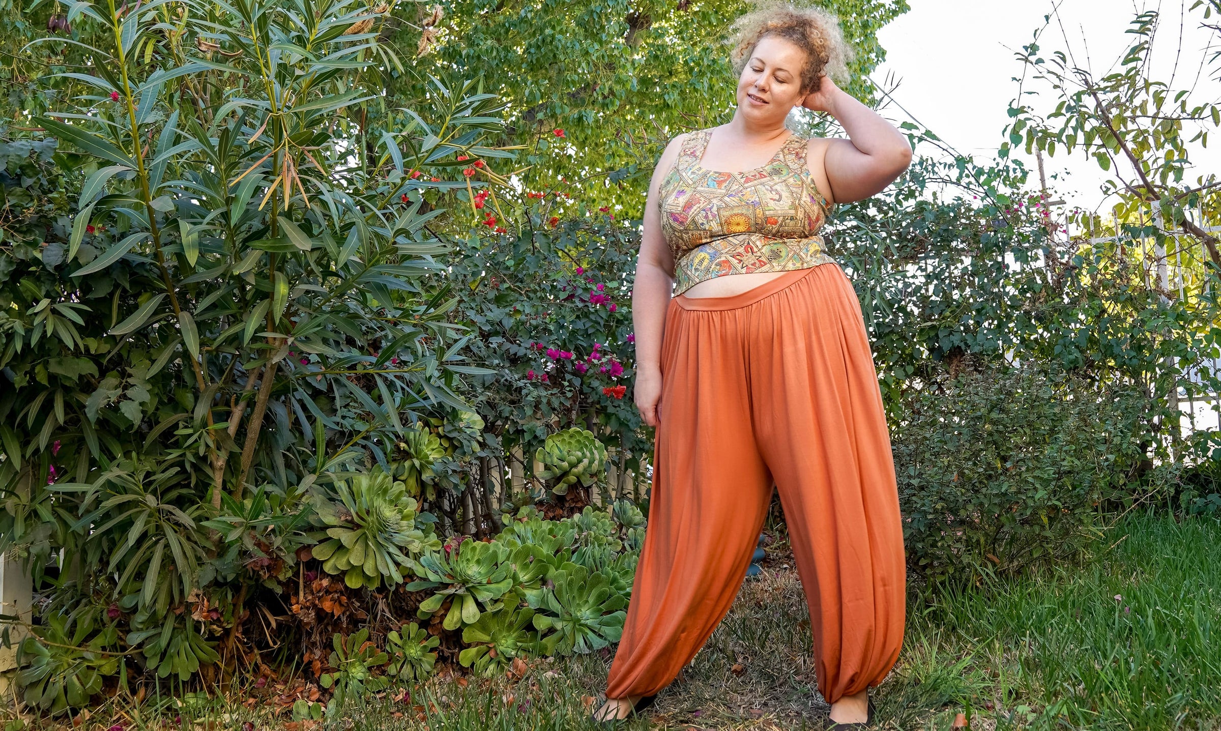 Amanda is modeling the Sample M/L. She tends to wear a M or L in our pieces and has a 41" Bust, 33" Waist, 40" Hip, and is 5'1".
