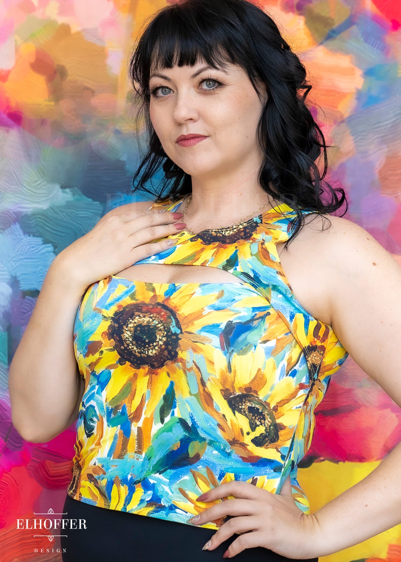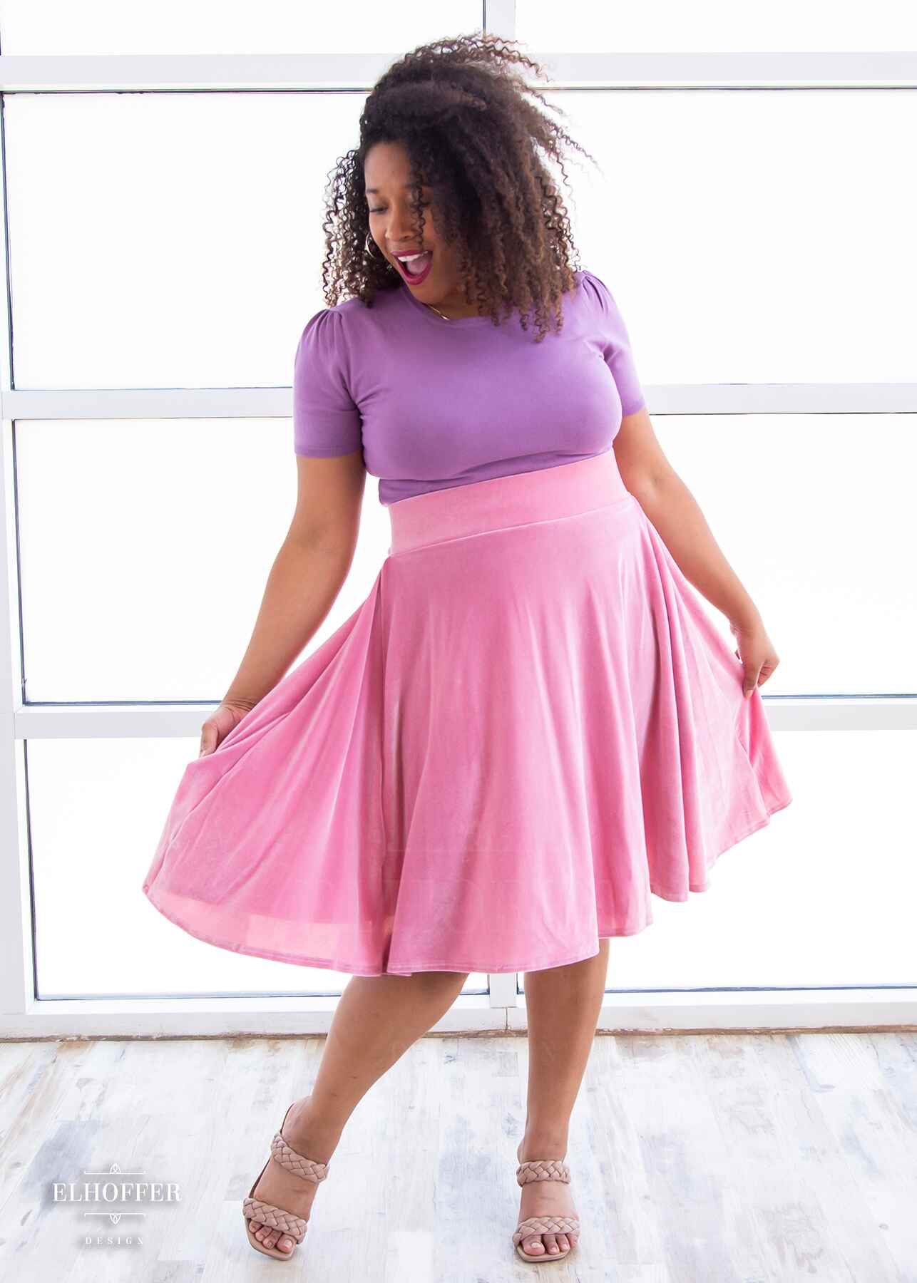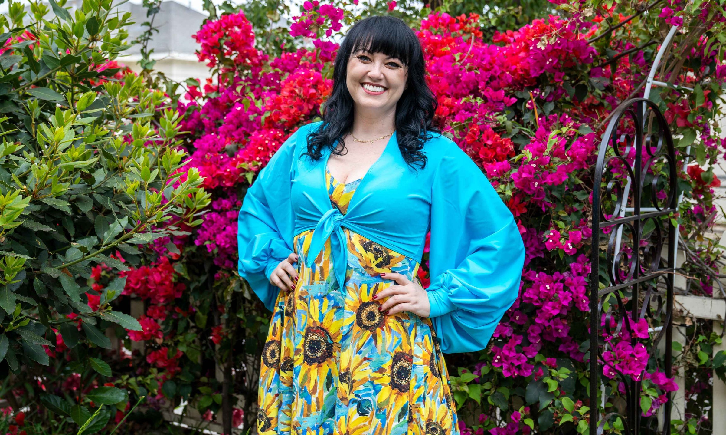 Kelsey is 5'9" and is wearing our Sample M/L. She has a 36" Bust, 26" Waist, and 42" Hip.