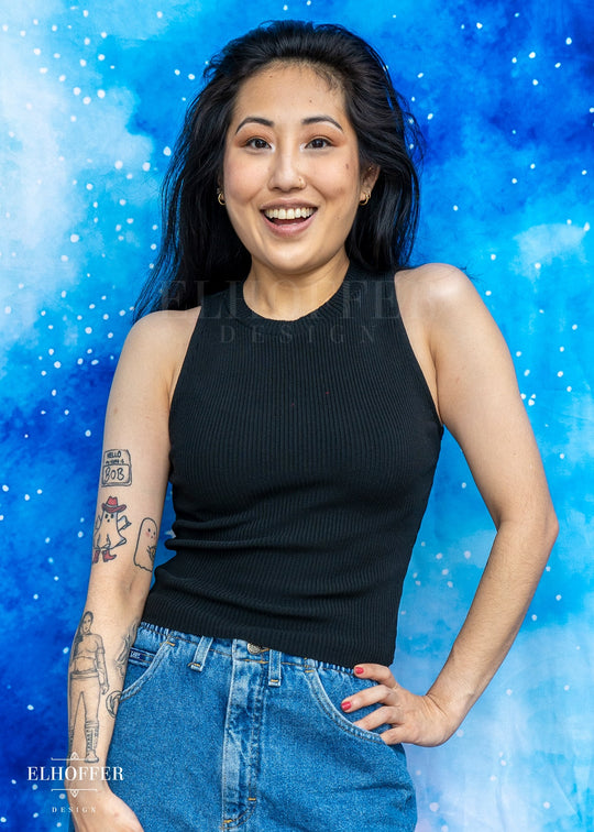 Our Longlines are made to be slightly looser fit. Feminine bodies can order their standard Elhoffer Design size for a light slouchy look, or down for a more fitted look. We have combined this sizing since the sleeves are open at the armpit. Pieces are cut from the larger of the two sizes in the combined sizing.