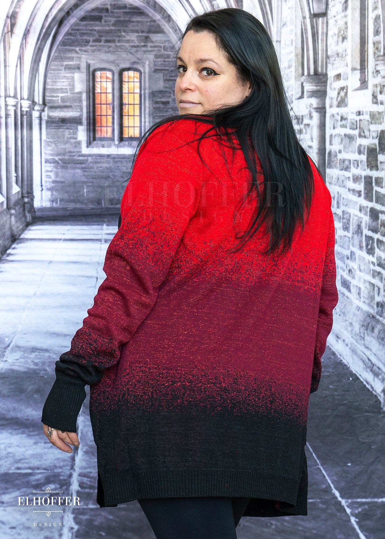 Bernadette is modeling the Sample XL but would've been better in the Large. She has a 40” Bust, 36.5” Waist, 43” Hips, and is 5’6”. She generally wears a L in our pieces.