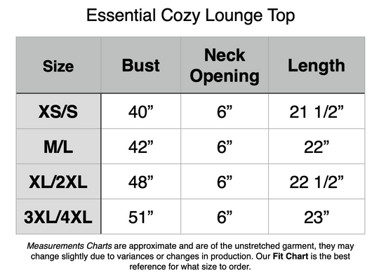 Bernadette is modeling the Production M/L. She has a 40” Chest, 36.5” Waist, 43” Hip, and is 5’6”. She generally wears a L in our pieces.