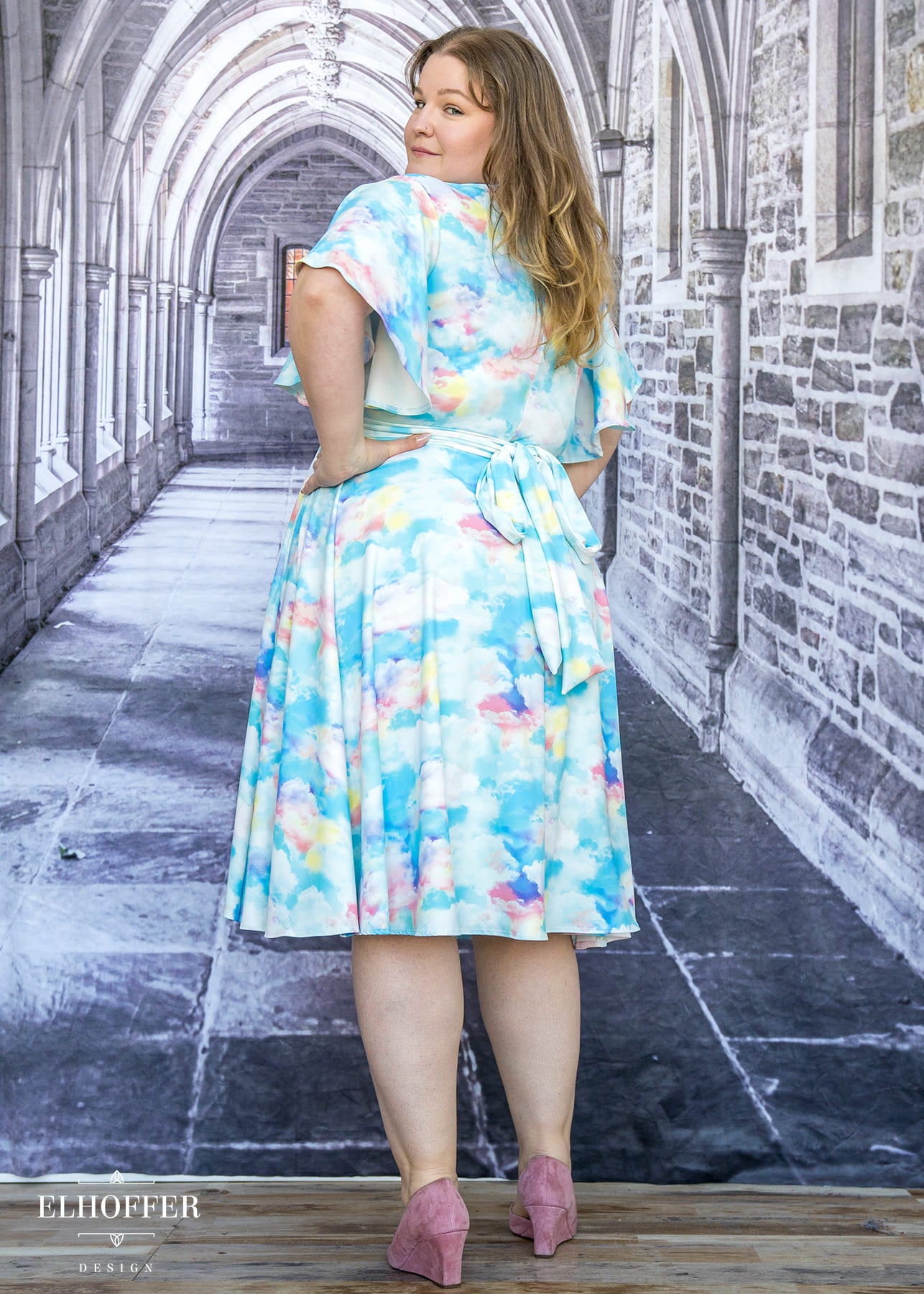 Essential Luisa Wrap Dress - Rainbow Pastel Clouds