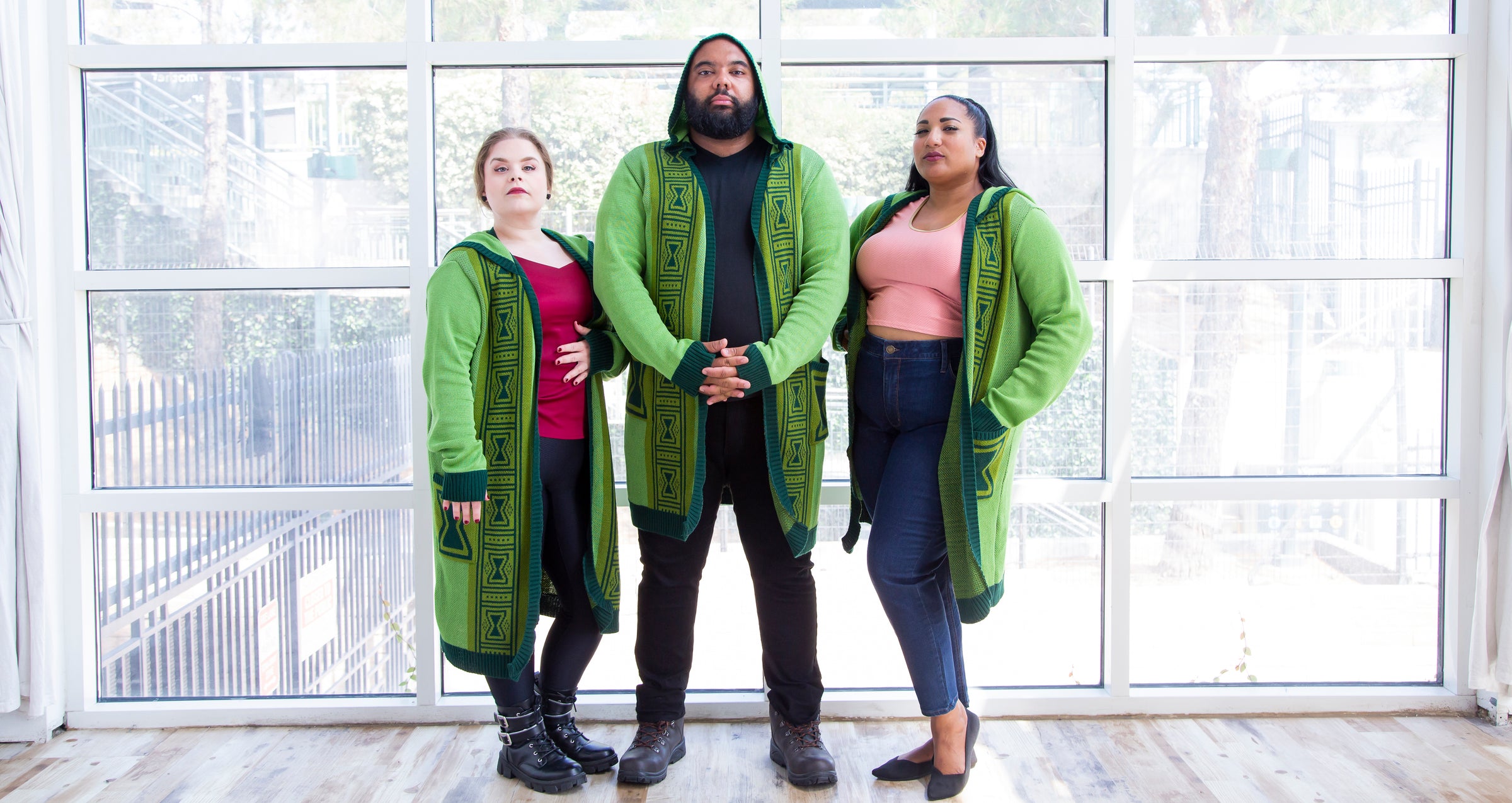 This zip up jacket is intended to be fitted in the arms and in the body when closed. We recommend ordering your normal size in our fitted pieces. It's also incredibly stretchy! You can go up for a more loose fit. We don't recommend sizing down as it stretches out the knit and shows the additional colors plated behind the top color.