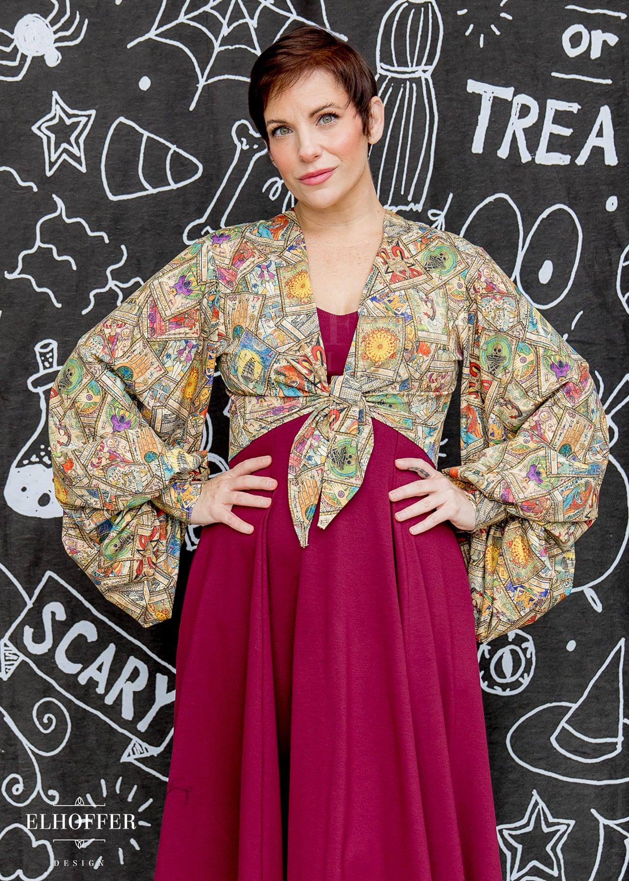 • Wrap Top with Long Bishop Sleeves Sleeves that Ties Just Under the Bust