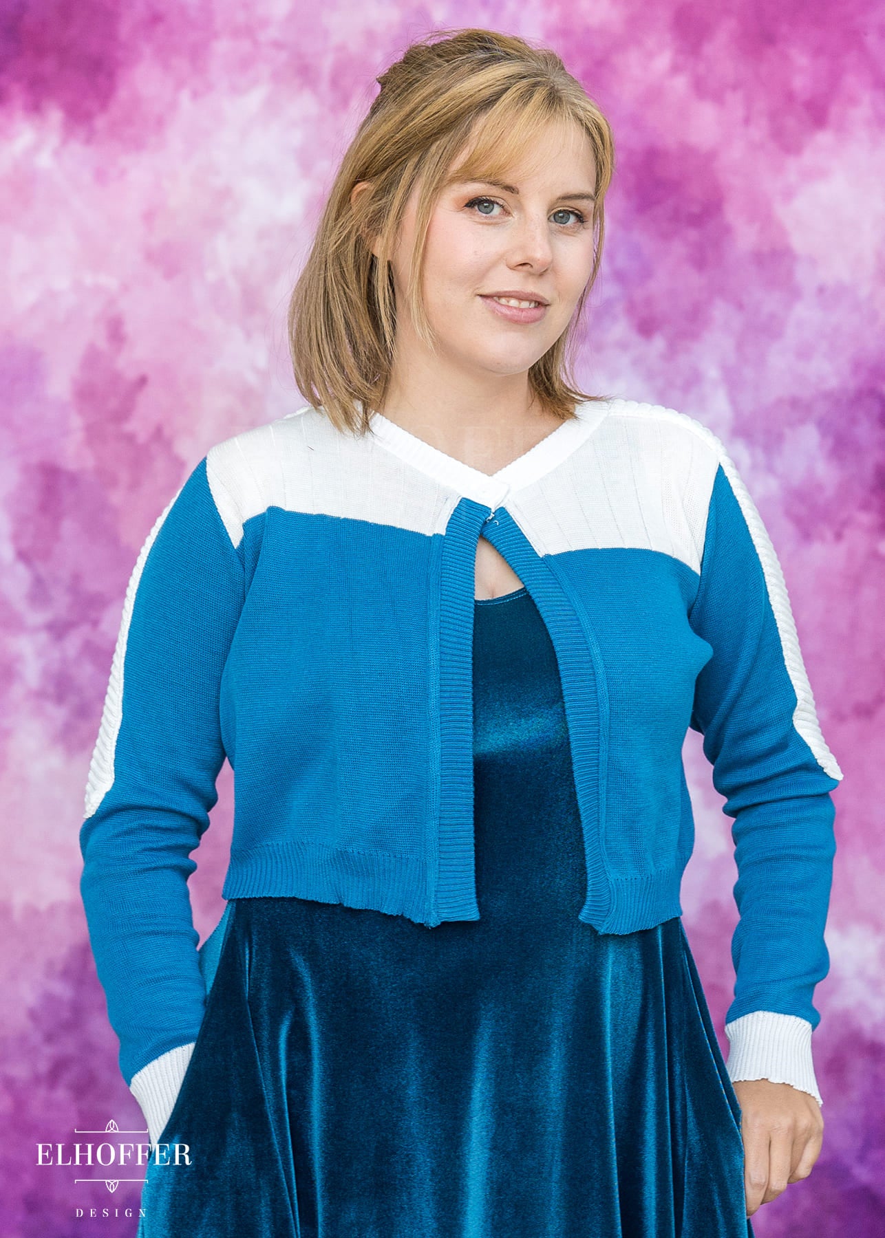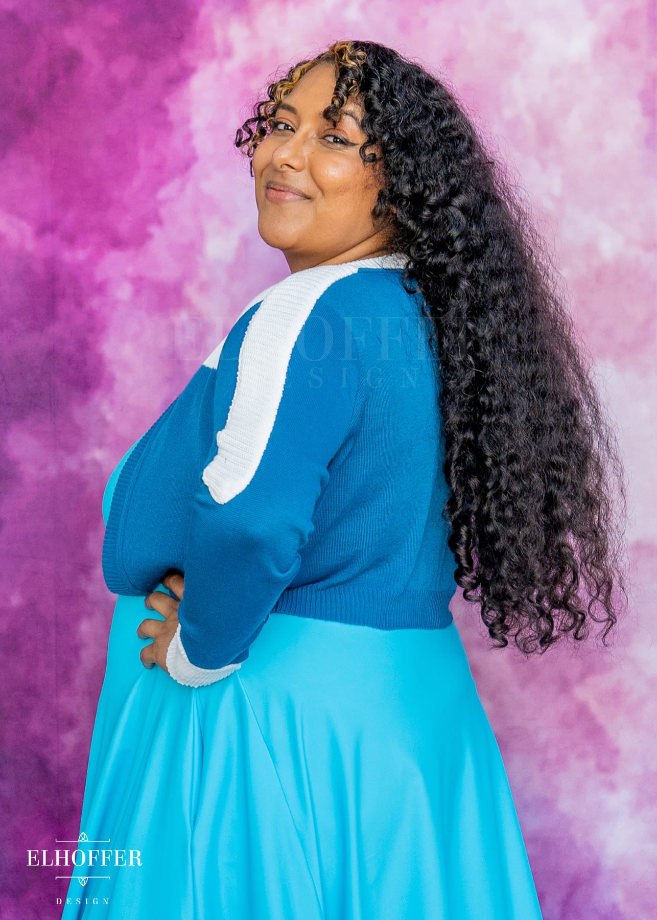 This cardigan is intended to be lightly fitted in the arms and loose in the body when buttoned up. We recommend ordering your normal size in our fitted pieces. It's also incredibly stretchy.