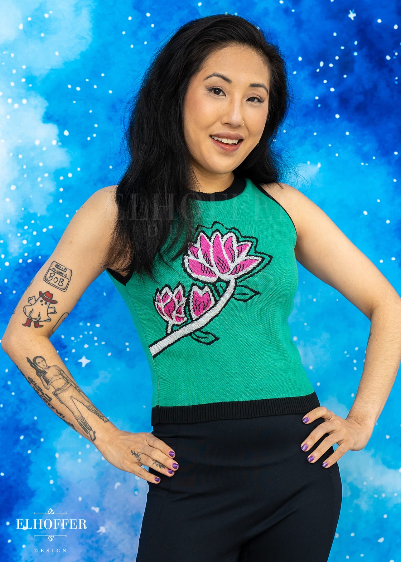 Our sample had the wrong shade of pink used in the flower, the final production will be a magenta instead of a light pink.