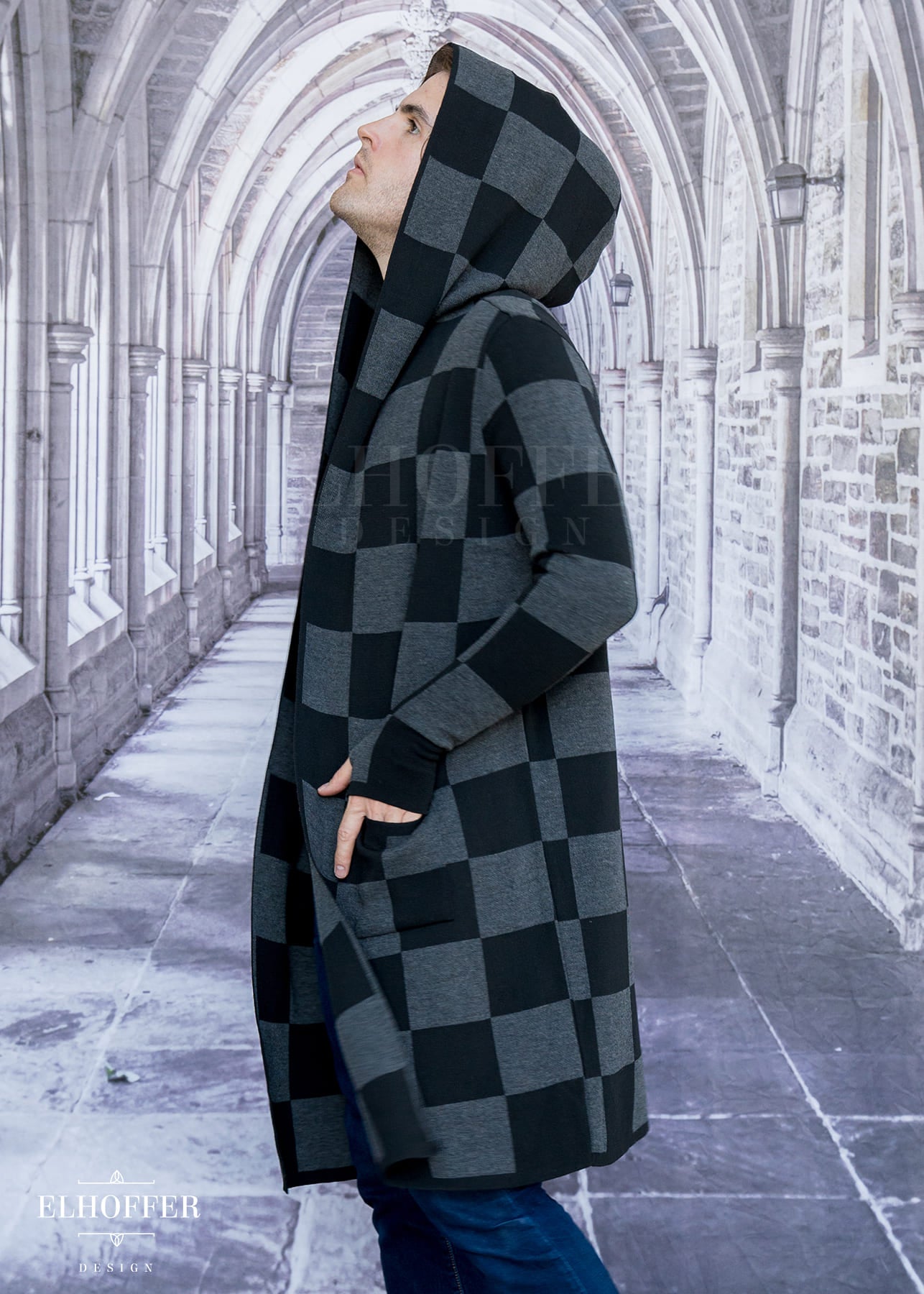 This is fitted on a men's body, so feminine bodies may want to size down for a more fitted look. Masculine bodies can likely stick to their t-shirt size. This is based on our Shawl Collar Cardigans and Knit Hoodie fits, but we've combined sizes to adjust to the demands our local factory has made for this more complex knit. If you are usually a Medium in our women's cuts you may want to go down to the XS/S for a tighter fit or stick to the M/L for a more loose 'boyfriend' style fit. A size Large may be best in the M/L. If you're on the smaller end of each size you could likely go down to the lower size if available for a more fitted style.