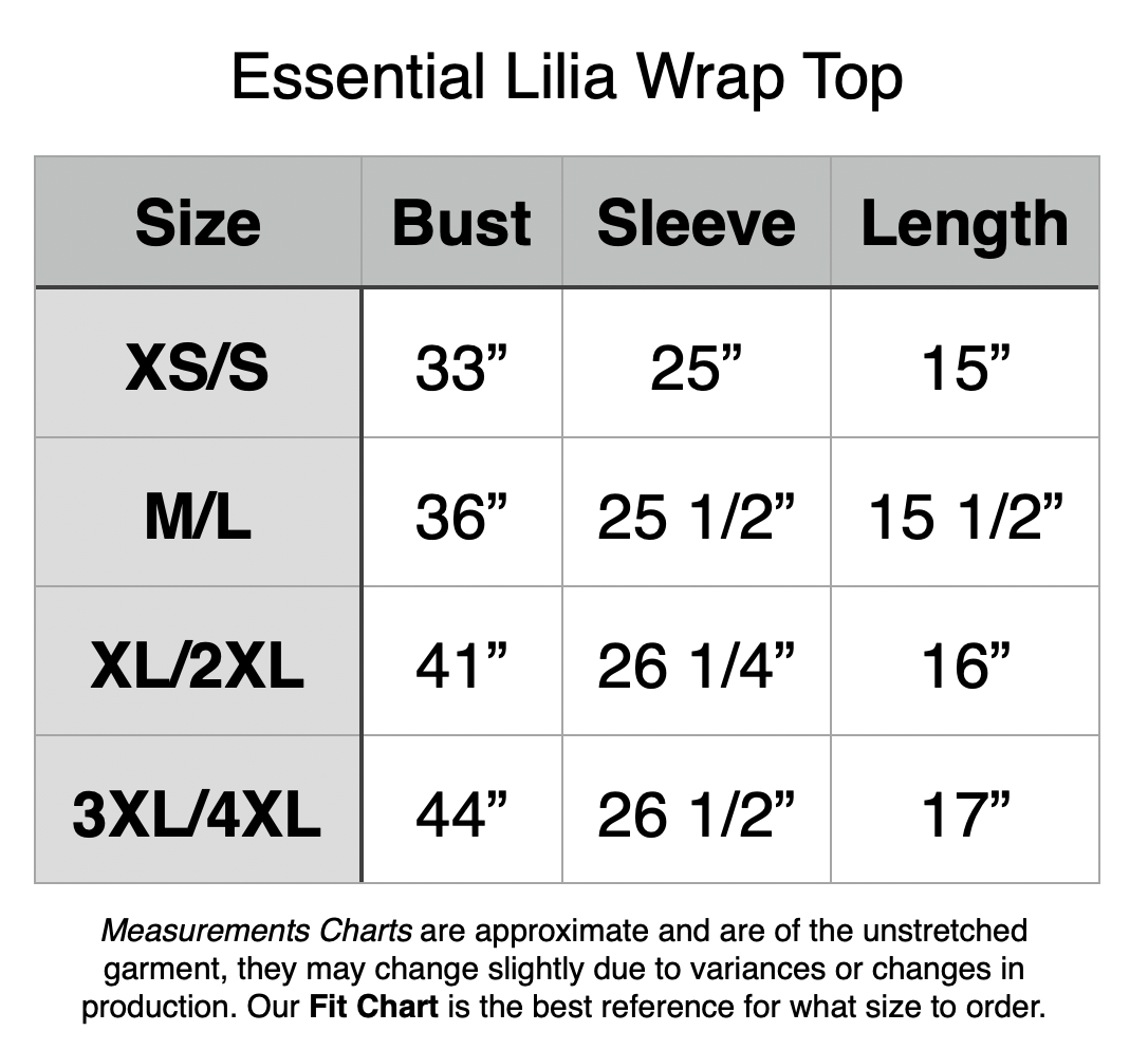 This piece has a lot of give built into it, the only important measurement is the bust, and even then it's a wrap so it's adjustable. Order your normal size in our pieces, but if you're extra busty we recommend going up a size.
