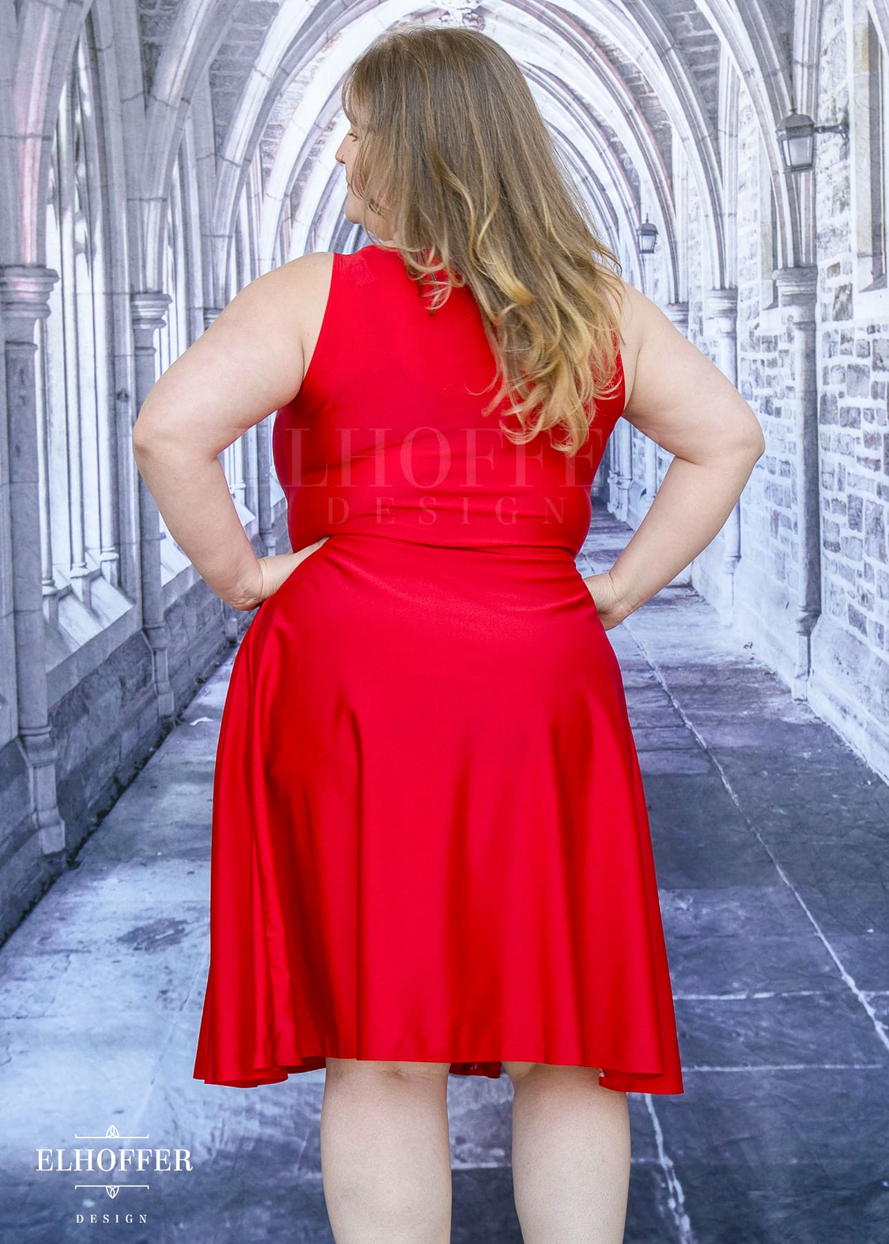 Dress runs slightly large due to the wide neck cut. Customers have been successful in sizing down on this piece to reduce potential gaping at the armhole due to the amazing 4-way stretch of the heavyweight spandex!