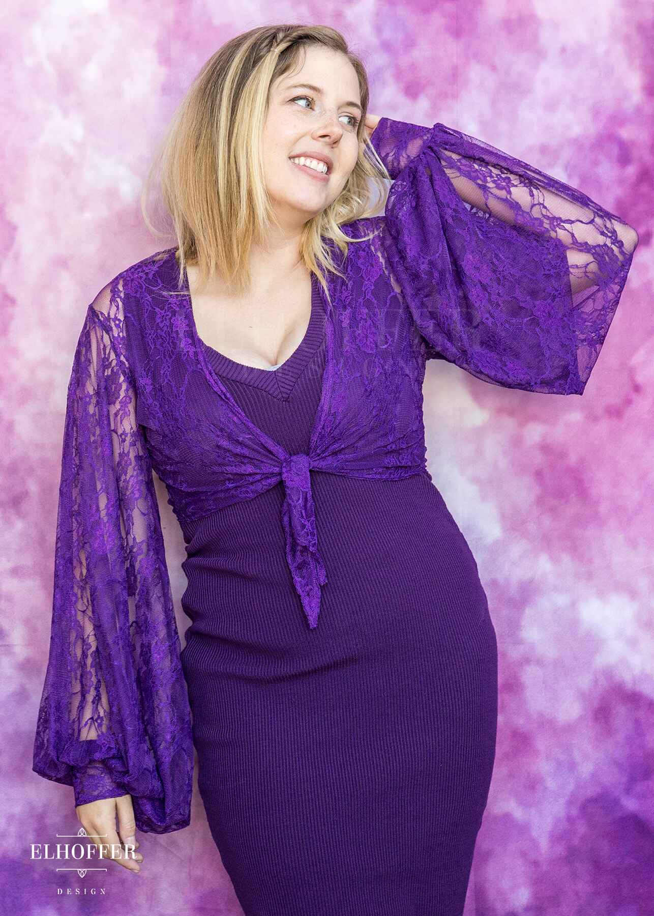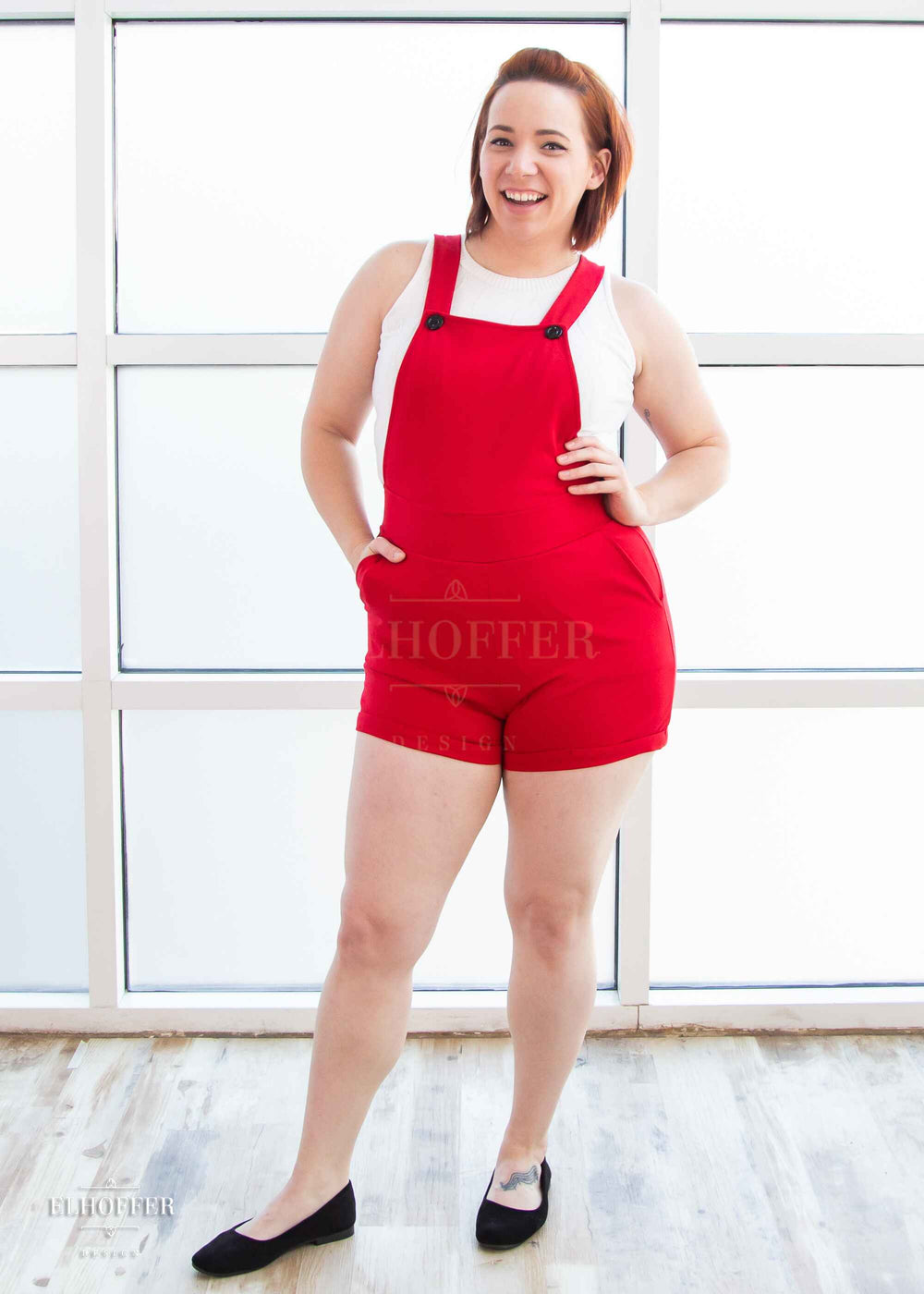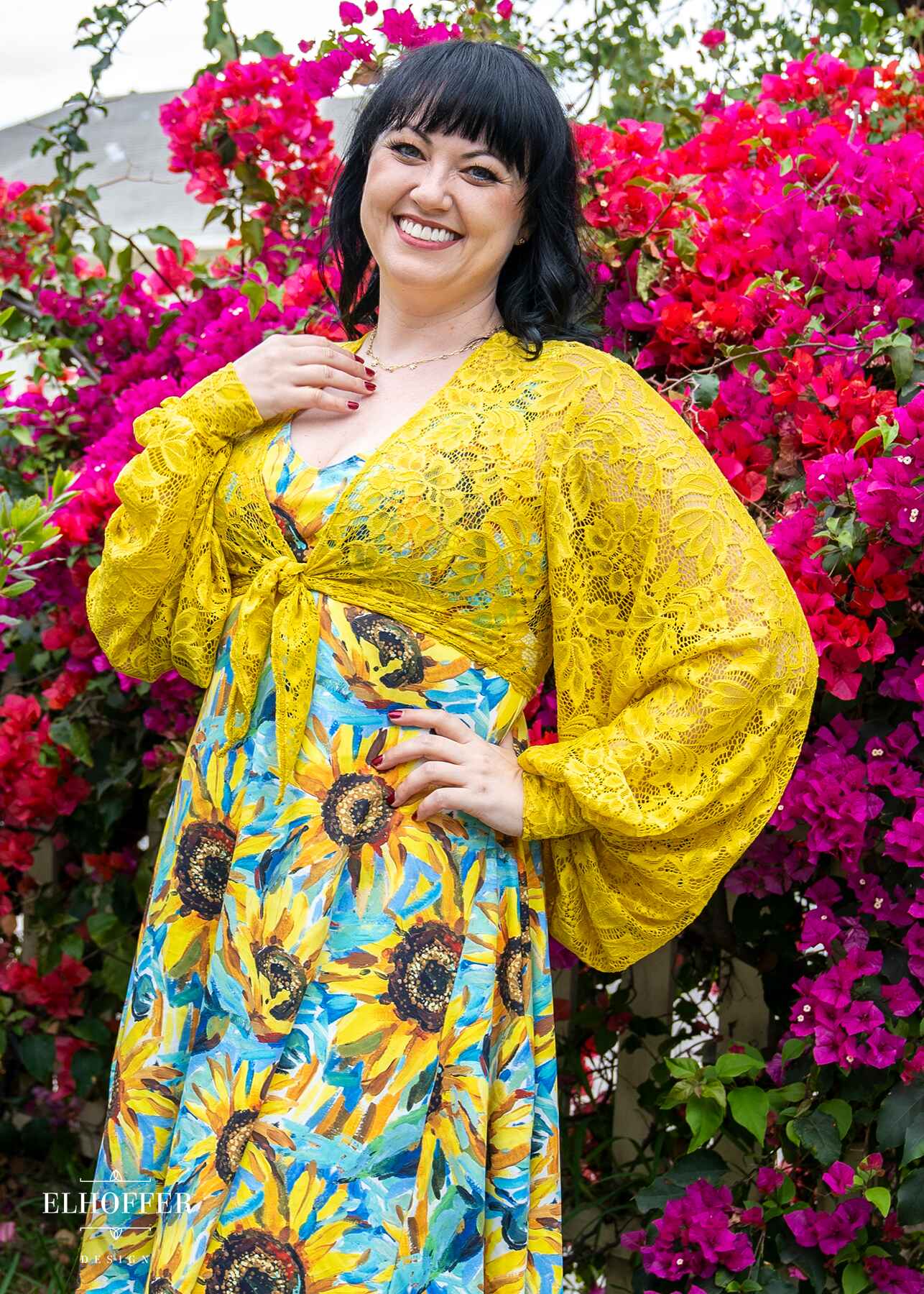 Alysia is modeling the Sample XL, but would order her usual 2XL. She has a 52” Chest, 46” Waist, 55” Hips, and is 5’4”. We don't recommend going down a size. Photos by Lauren Elisabeth Photo