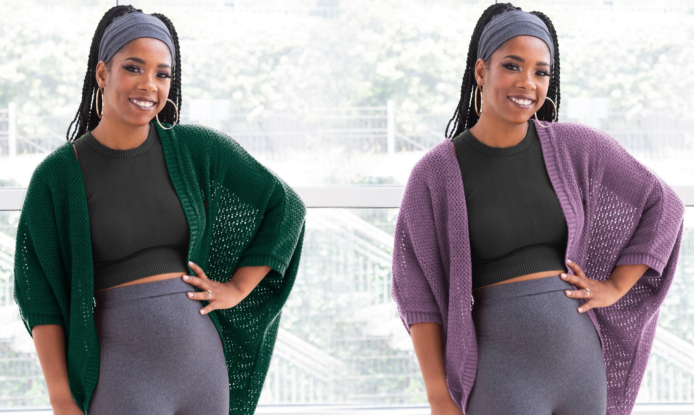 Zoe is modeling the Production L. She has a 41” Chest, 34” Waist, 43” Hips, and is 5’2.