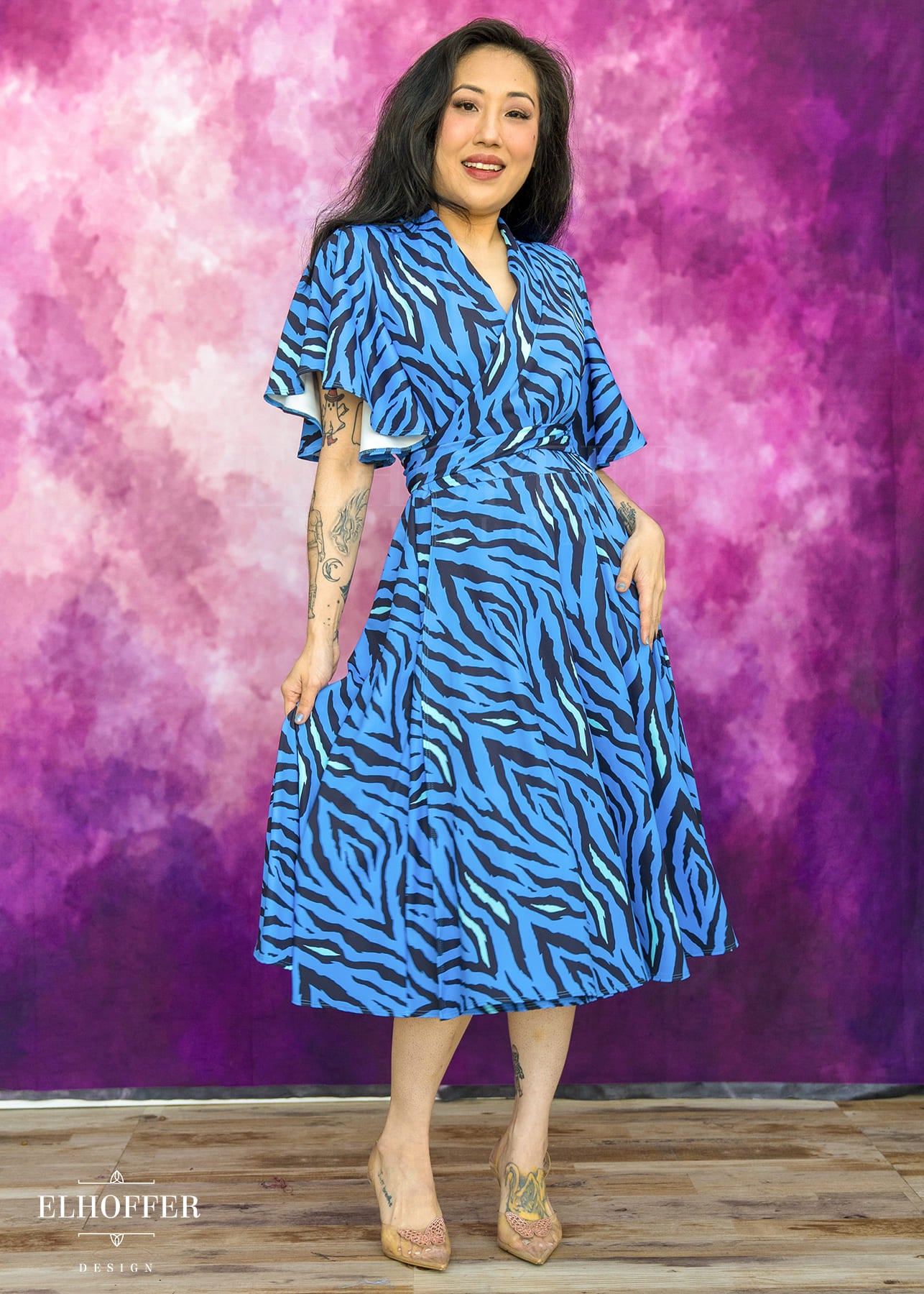 Our wrap dresses are absolute magic! Perfect for casual cosplays and bounding, weddings and semi-formal events, or just regular everyday life. The full coverage skirt means you're never at risk of showing undergarments, and the full flutter sleeves are incredibly luxurious. And of course there are pockets!