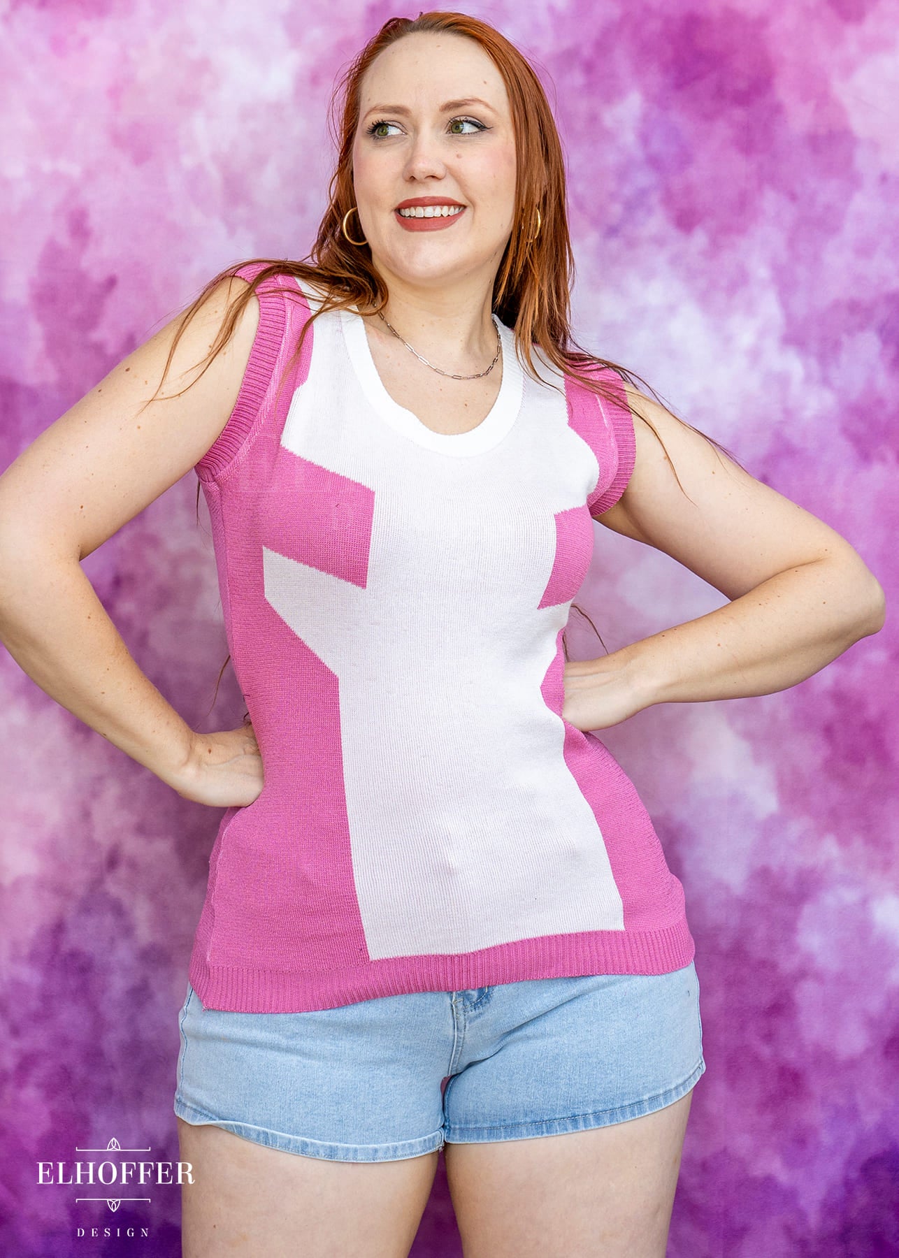 Lovers of Chimichangas and breaking the fourth wall will have a mighty need for this knit sleeveless top. For minimal fashion effort but maximum payout, this stretchy and subtle knit will keep you geeky all day long.