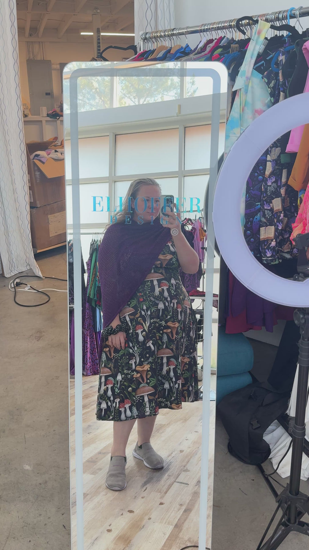 To try to reduce our footprint we cut and make pieces out of the leftover knits and damaged blankets. These would normally be thrown away but we hate seeing so much trash created, so we brought bags of damaged blankets back to our studio, organize them into usable piles, and play around creating new pieces with the blankets!
