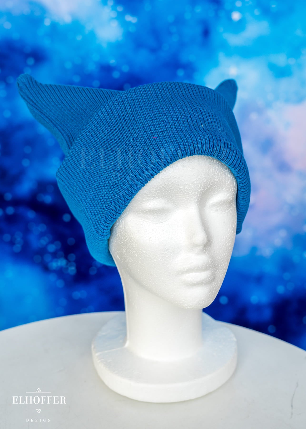 Snips Blue Ribbed Demon Horn Beanie