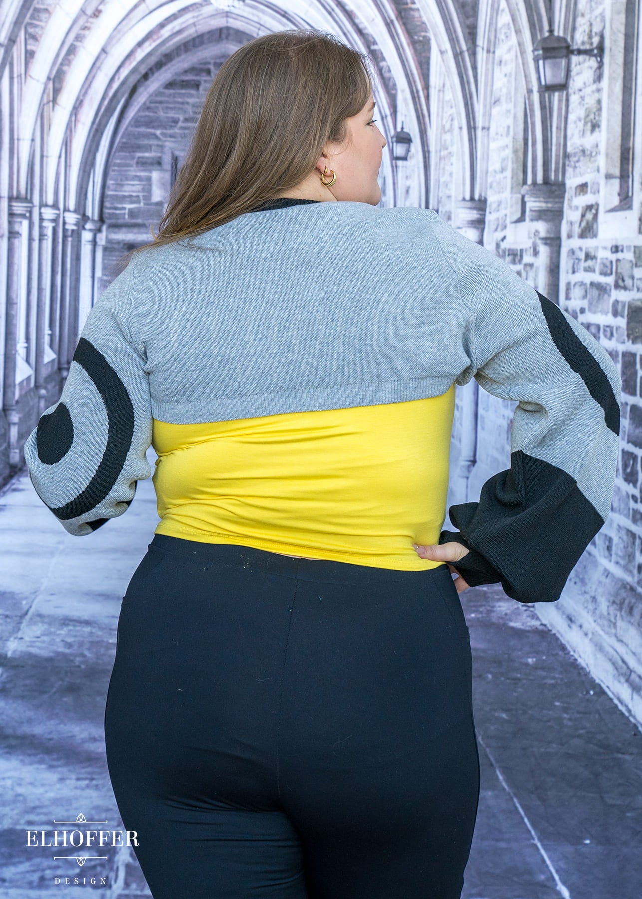 Bernadette is modeling the Production S (XS-L). She has a 40” Bust, 35” Waist, 41” Hips, and is 5’6”.