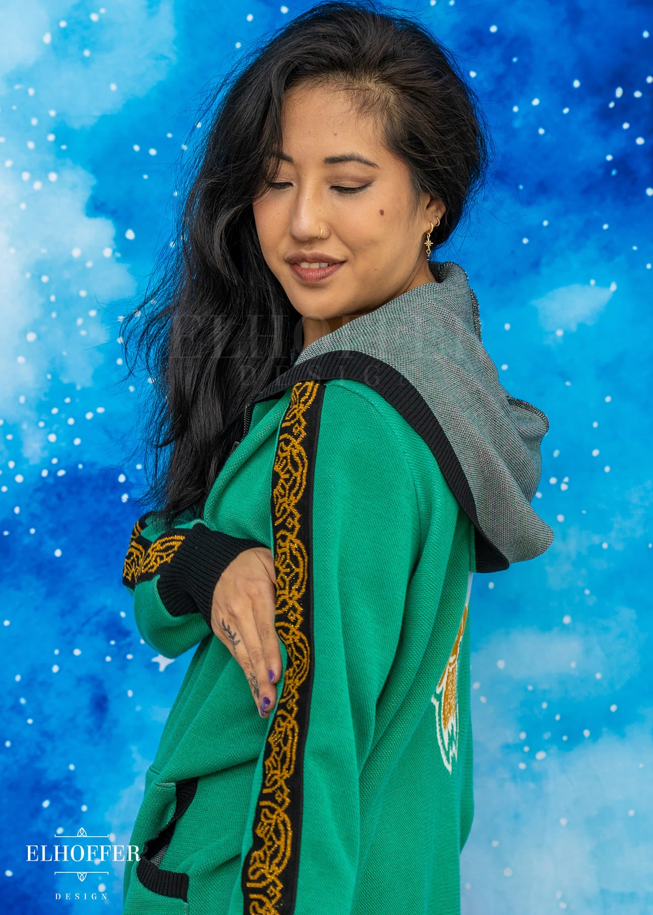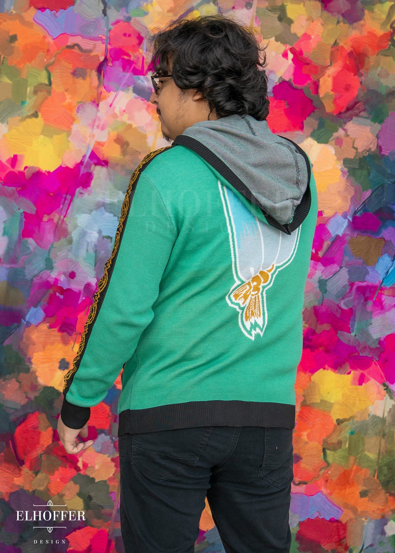 This is one of our Unisex pieces, meaning we fit it on a male body for a Medium. This piece is designed for a more feminine body to have a relaxed fit, and for a more masculine body to be more fitted. Masculine bodies may want to size up for a relaxed fit. Feminine bodies can order their standard Elhoffer Design size for a slouchy look, or down for a slightly more fitted look, or two sizes down for a very fitted look.
