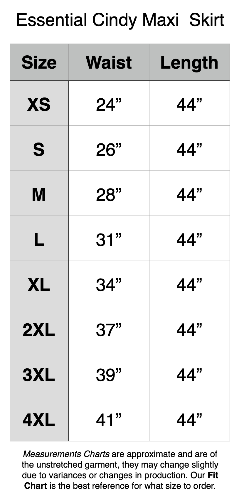 If you're unsure of what to size off of, the chest for tops/dresses tends to be the most important measurement to check as our pieces have such a good stretch that even if you're more rectangular shaped with a waist nearly matching your bust, the waist of the garment will very likely stretch to fit!