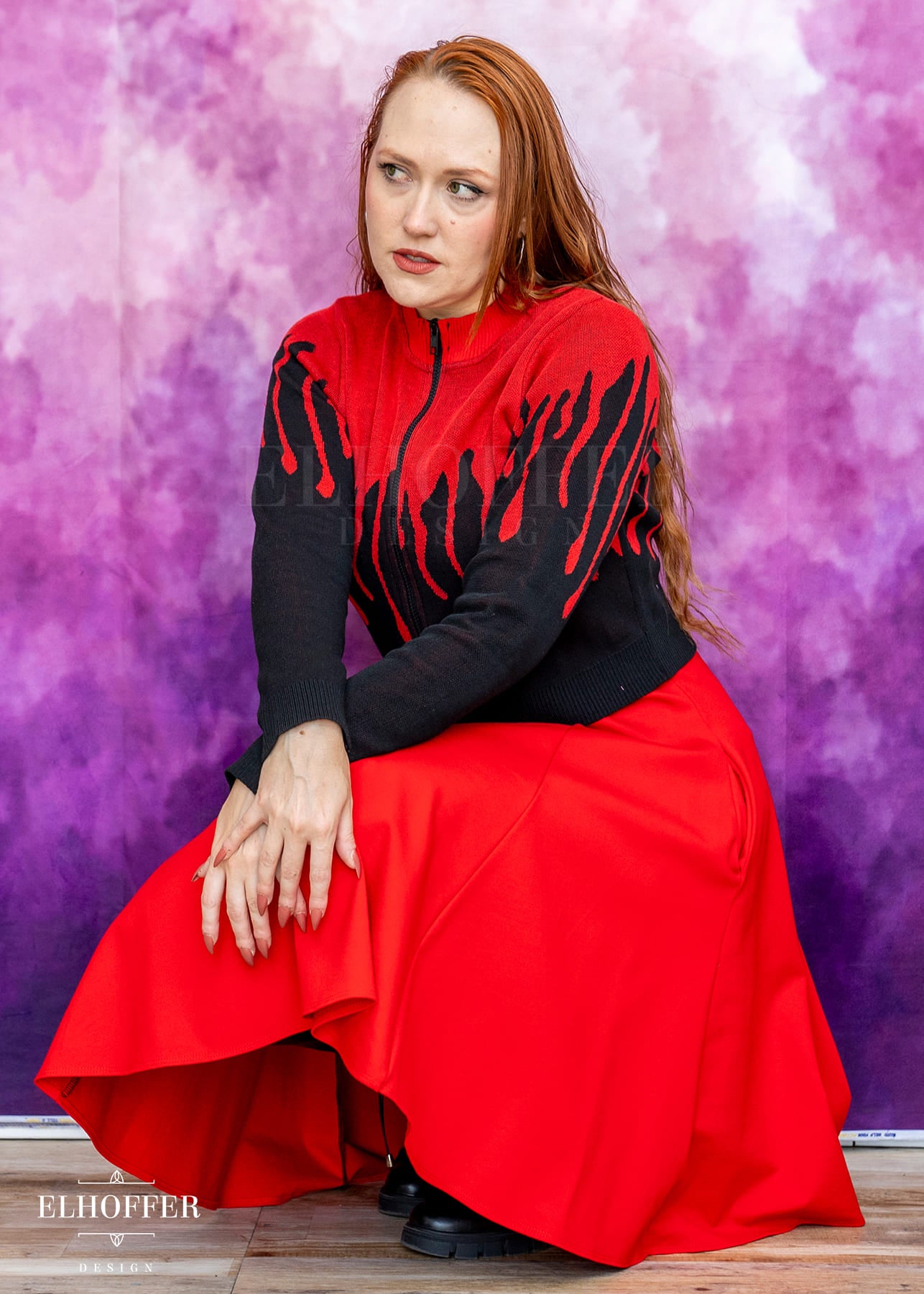 Kelsey is modeling the Production S. She has a 36” Chest, 27” Waist, 42” Hips, and is 5’9”.
