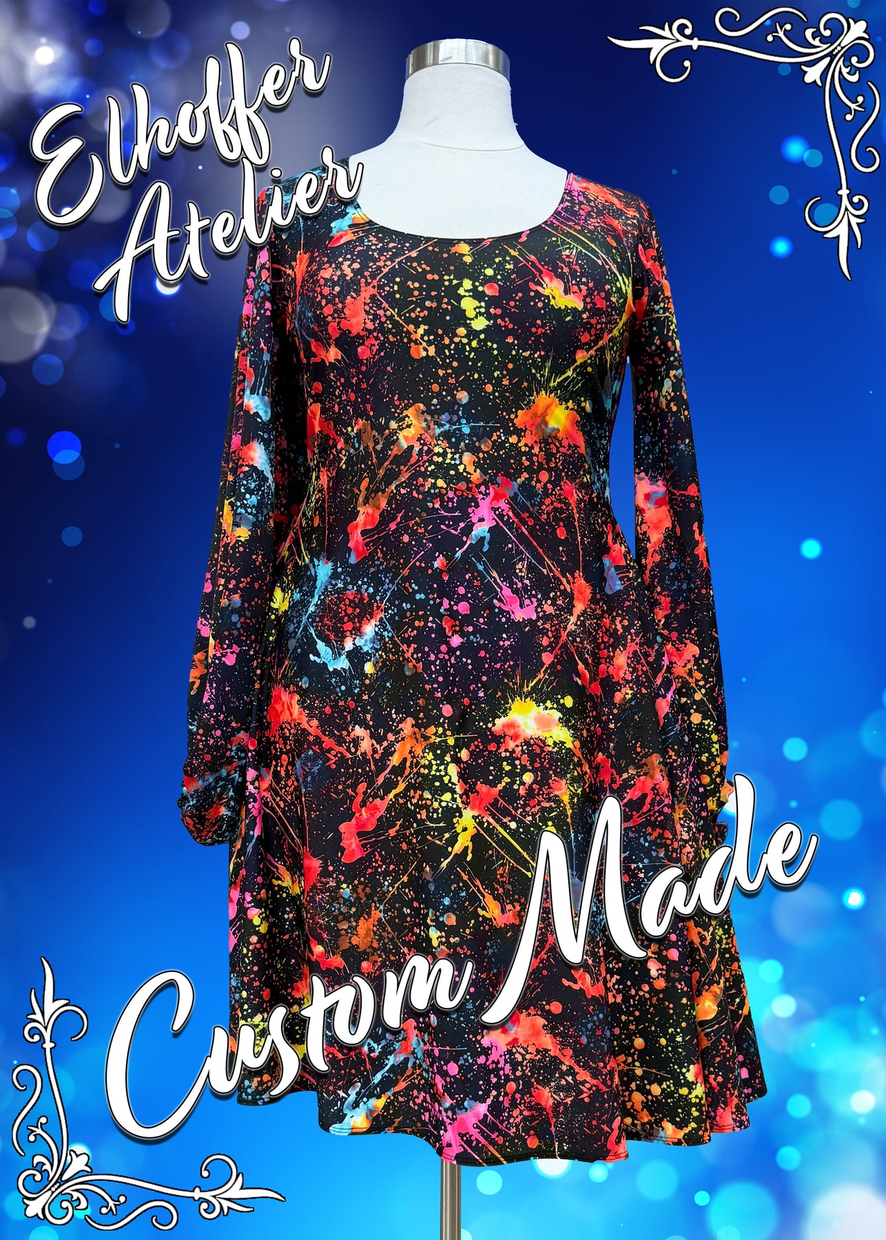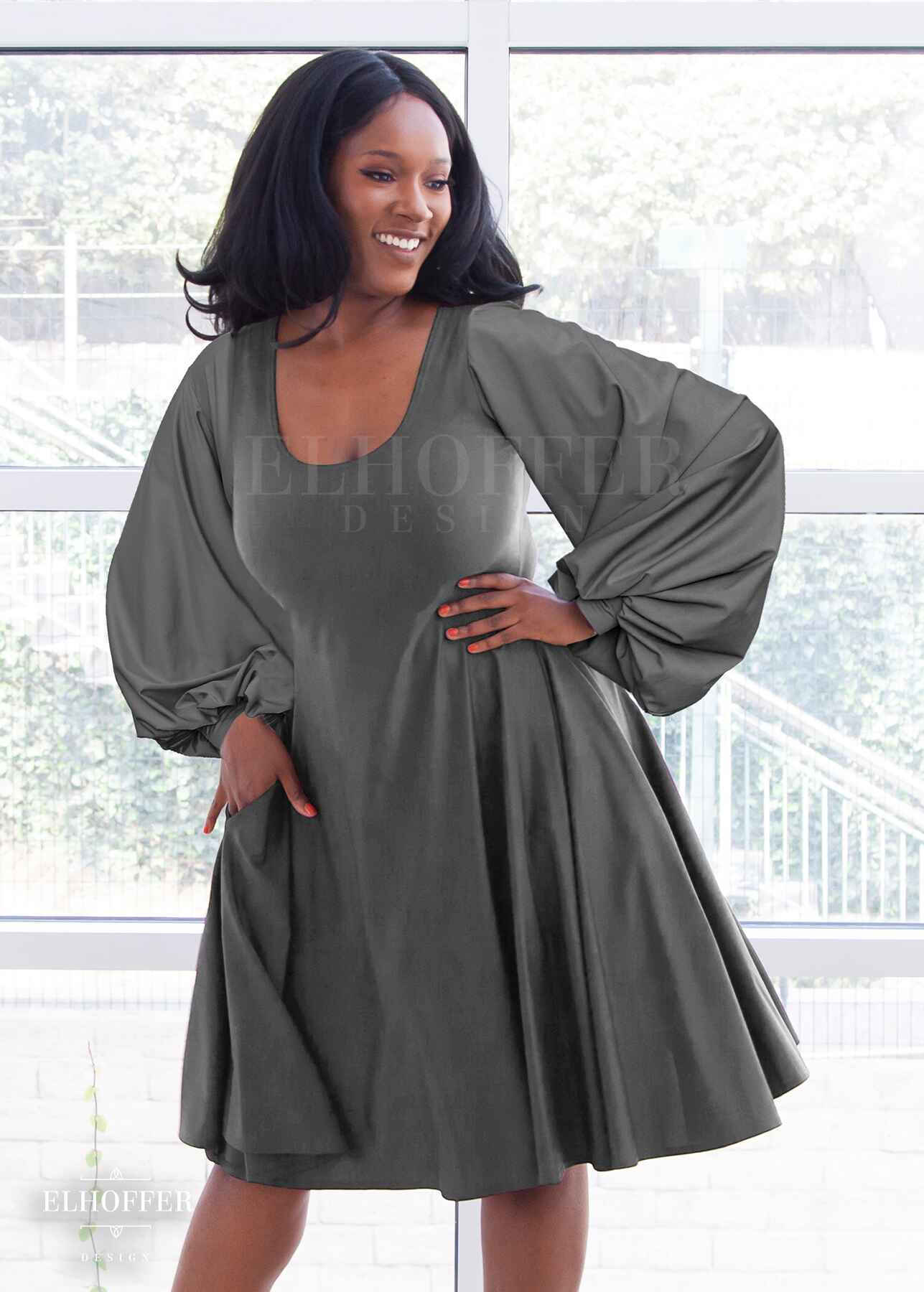 Elhoffer Atelier - Custom Scoop Neck Knee Length Dress - Bishop or Bell Sleeves - Made to Order