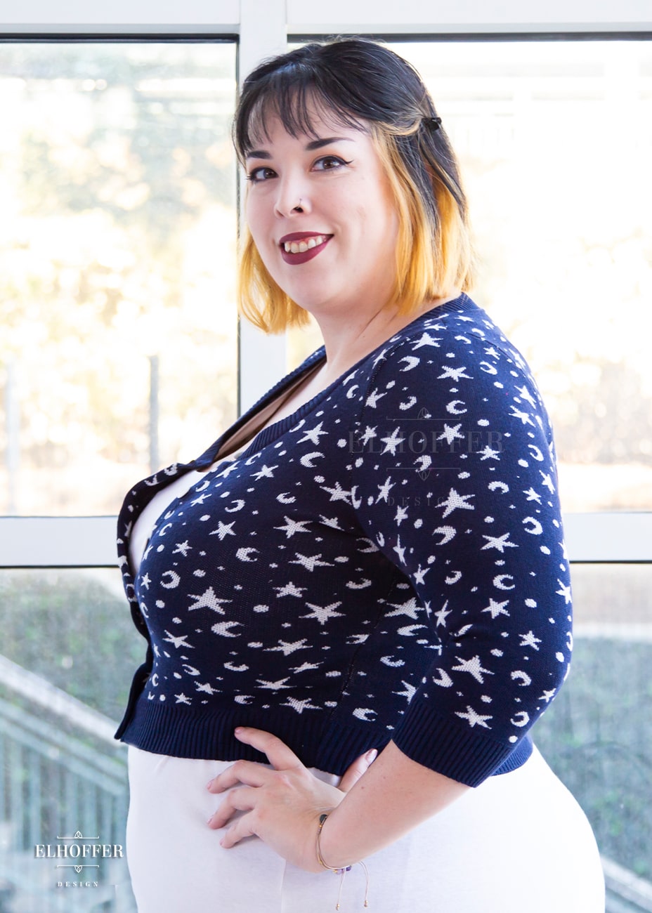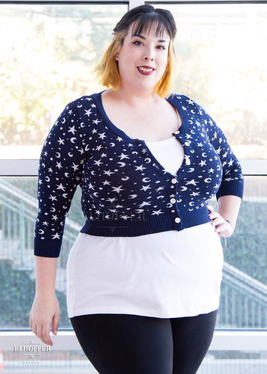 Essential Cordelia Cropped Cardi - Navy Starry Witch