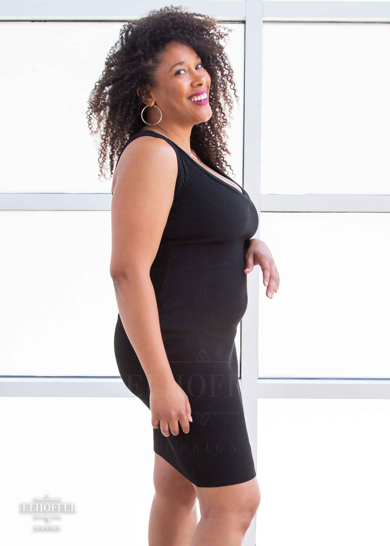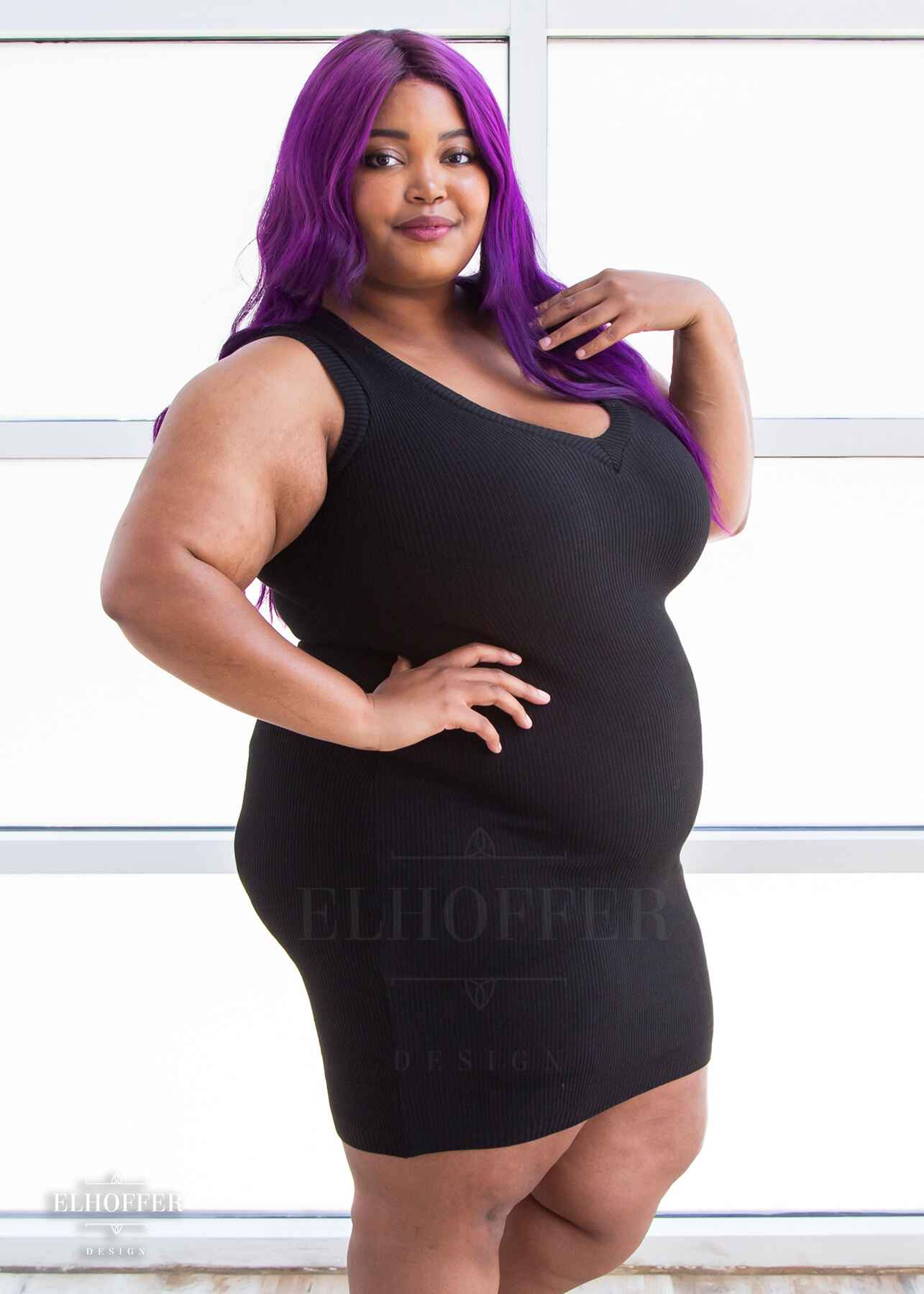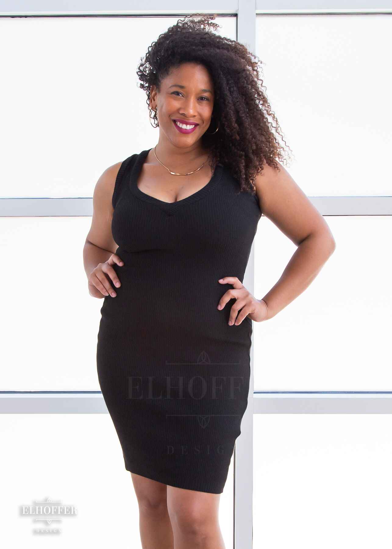 Custom knit to hug every curve, this fitted thin and incredibly stretchy dress will fit any hip and make you feel like an absolutely queen with the reversible deep V and wide boat neck necklines!