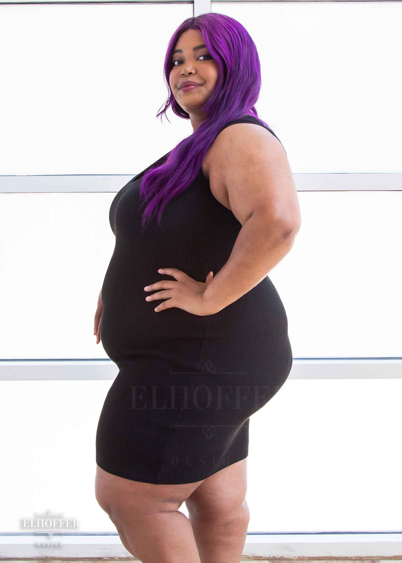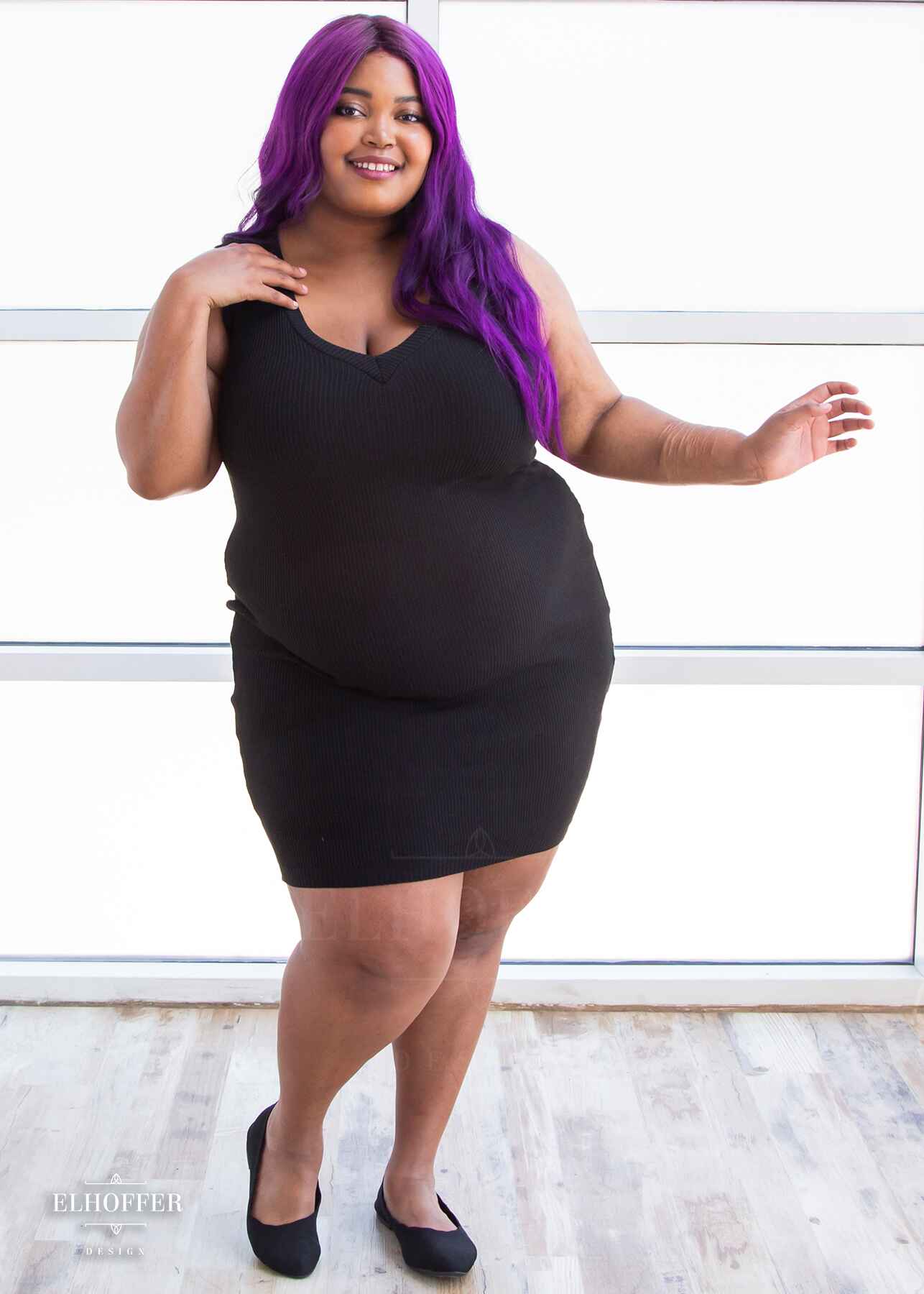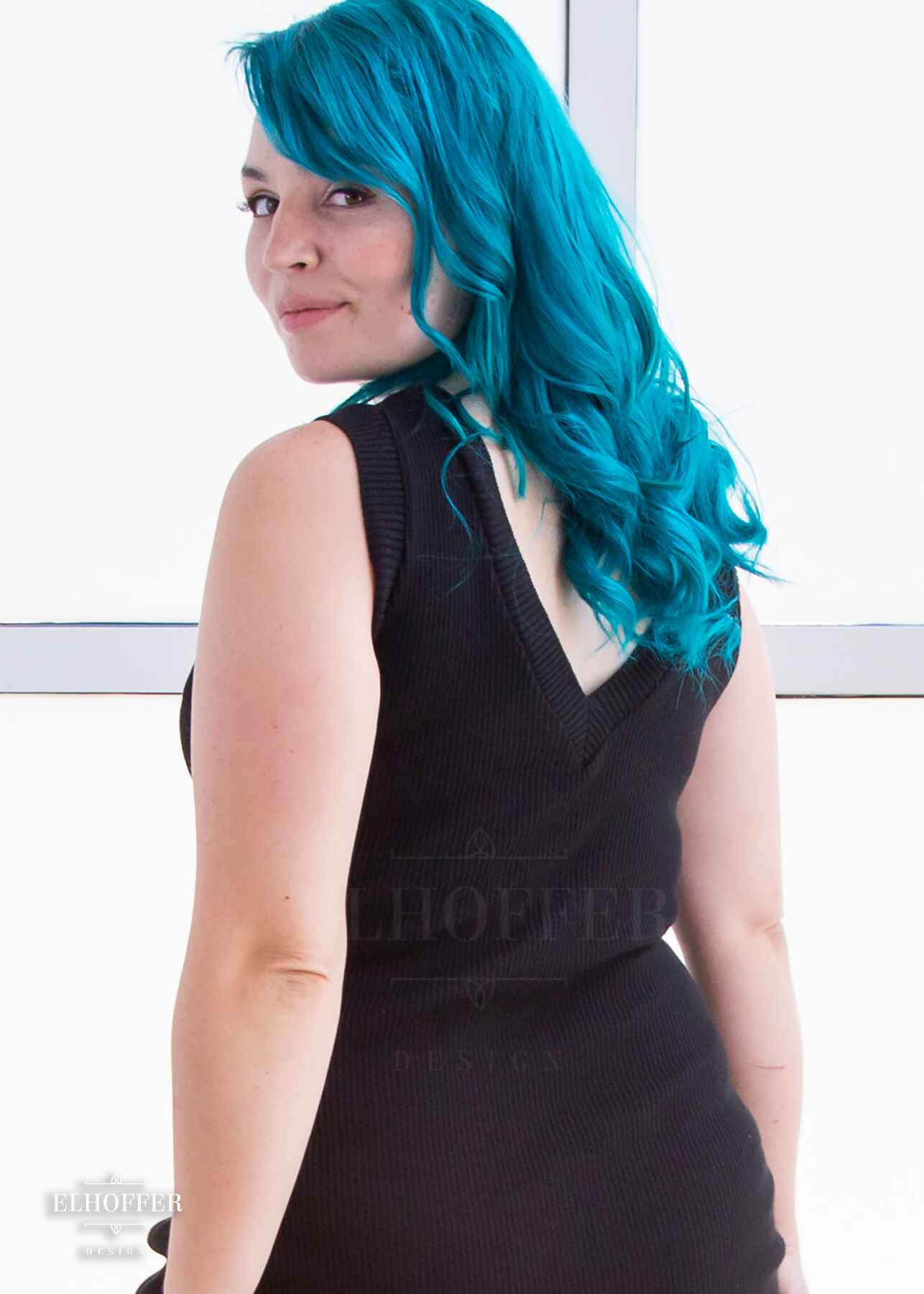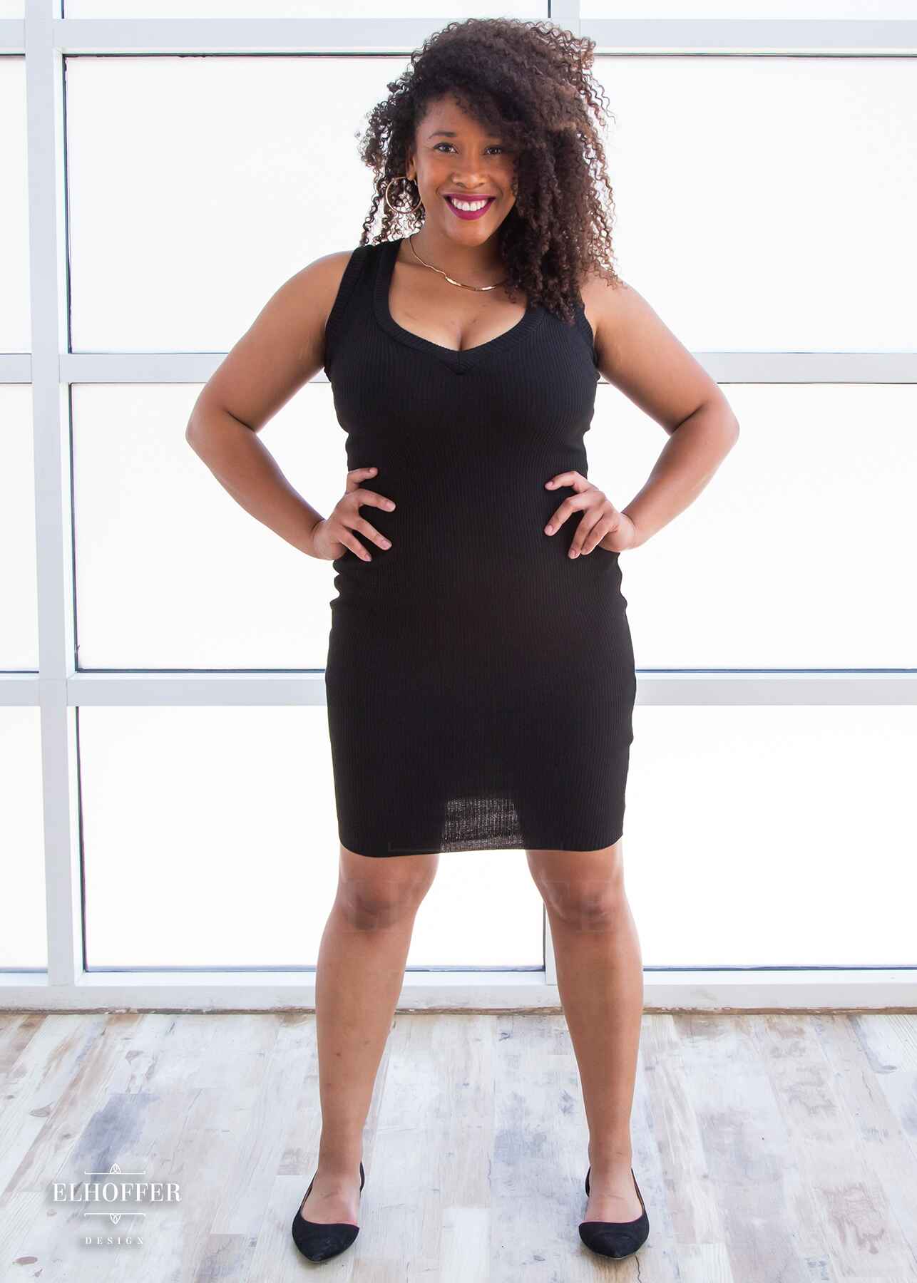 Custom knit to hug every curve, this fitted thin and incredibly stretchy dress will fit any hip and make you feel like an absolutely queen with the reversible deep V and wide boat neck necklines!
