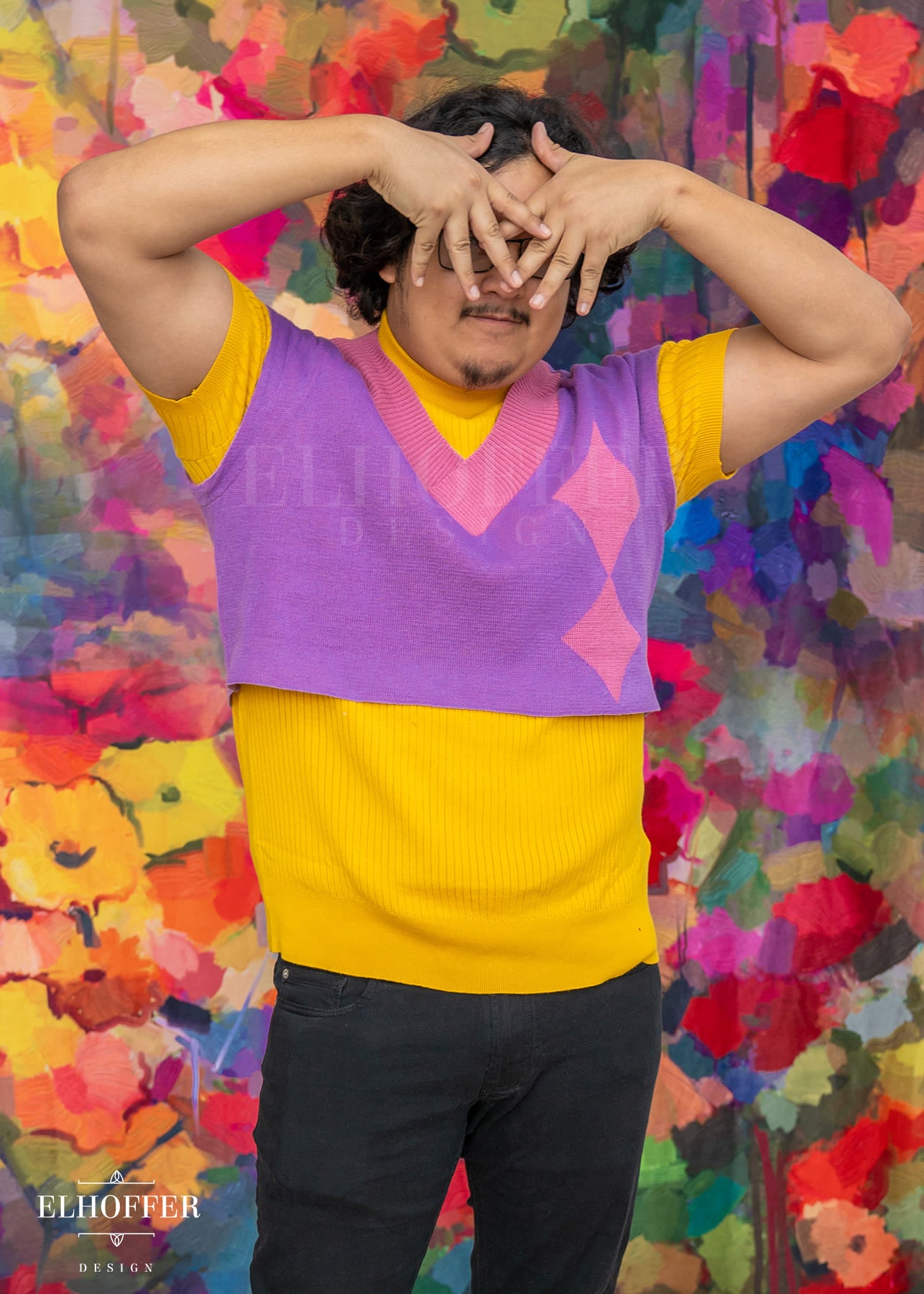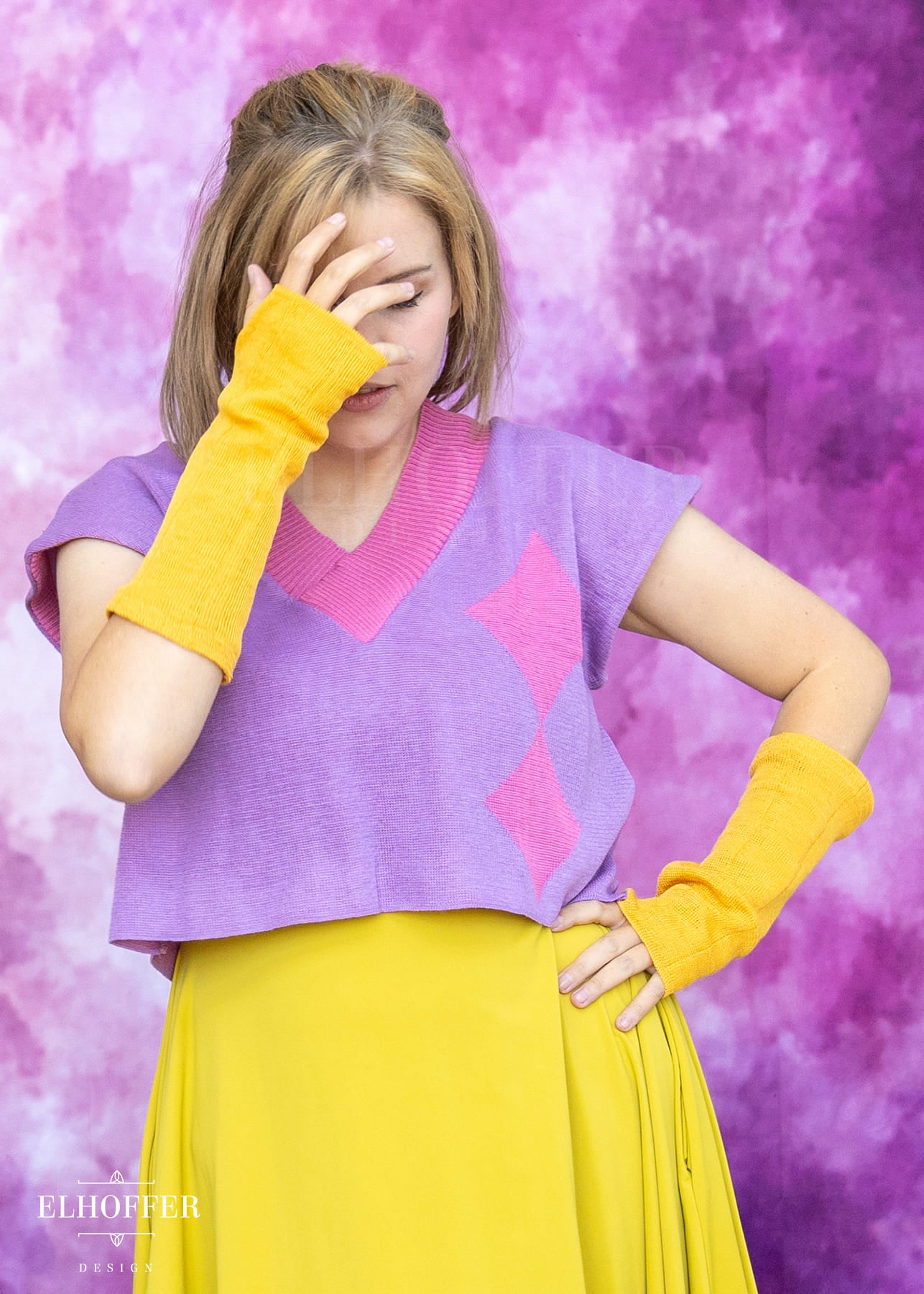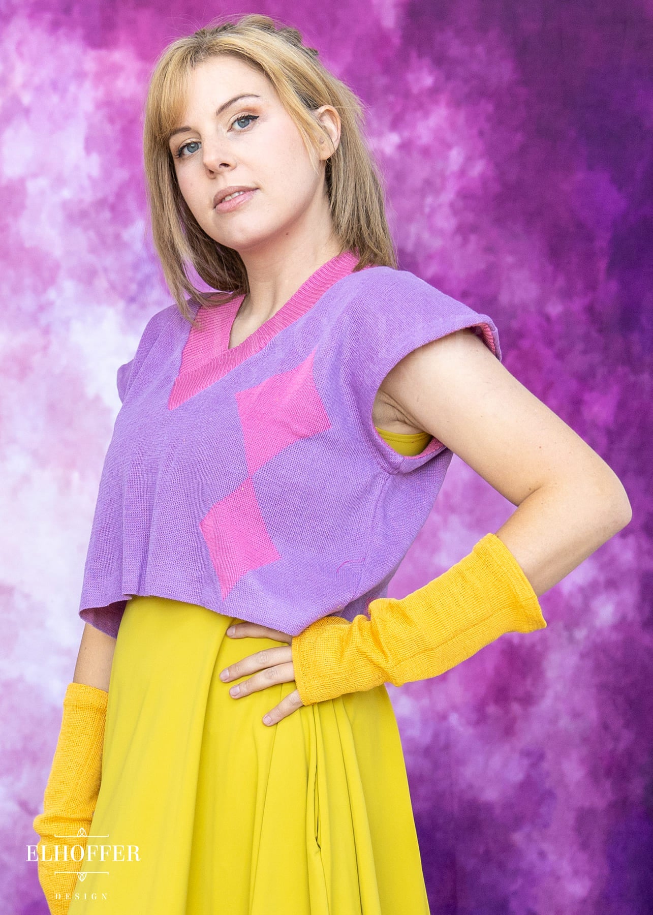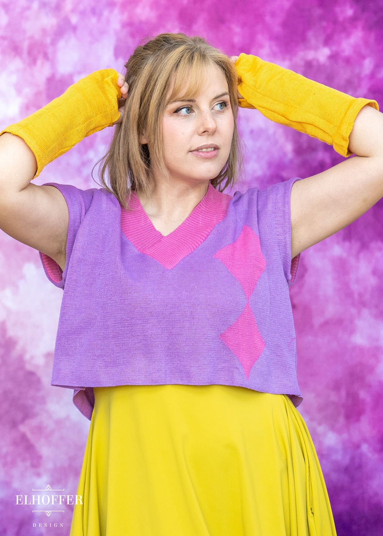Please note: The Lighter Purple shade sample is what yarn we currently have. We've mocked up the color we are hoping to adjust our yarn to with mixing with other colors. We may be unsuccessful in this change in production, but we won't know till we start the production. We're also trying to adjust the art to have the stars be a little thinner, but our knit house computer has been not working well so we aren't sure if that change will happen.